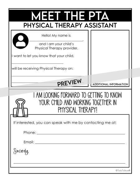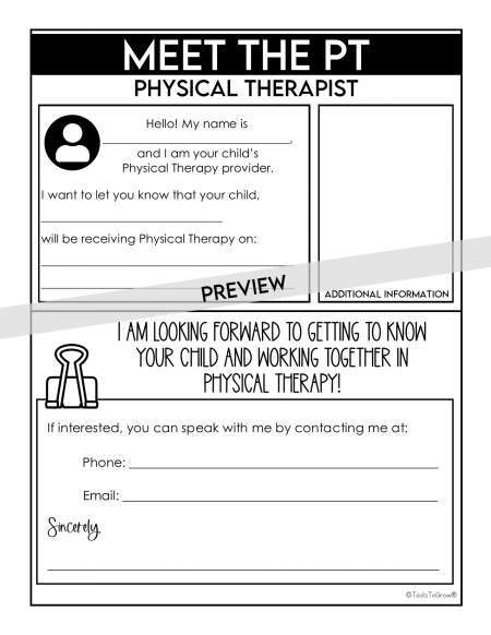 This one page EDITABLE Handout for Parents/Caregivers is a great way to introduce yourself and PT to parents and caregivers! TYPE directly into PDF. Insert a picture of yourself!