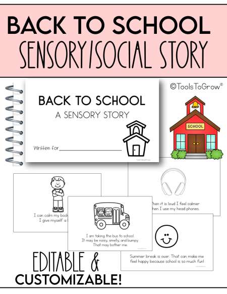 This Sensory Story Includes: 34 Different Story Pages and Sensory Strategies. Personalize title page. Simply print, select pages and place in the correct sequence in the story book. Once all pages are properly arranged, staple on the left. Enjoy reading with your child!
