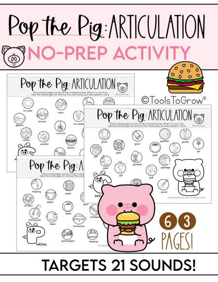 What’s Included? (1) 60 black/white articulation practice pages for the following sounds in all positions: B, CH, D, F, G, H, J, K, L, M, N, P, R, S, SH, T, TH, V, Z, and W & Y in the initial position and medial positions. (2) Each sound has 16 initial words, 16 medial words, and 16 final words to practice. (3) 1 open-ended page: Customize and write your own words or use with your language students. TYPE into fillable PDF! (4) Each sound includes target words and a visual cue!