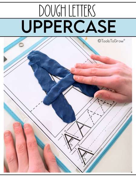 Great way to encourage fine motor skills and letter formation! Roll out the lines necessary for each letter. Place the lines together on top of each dough mat to make that upper case letter. Practice printing each letter on the bottom of each page with proper formation. Includes all Upper Case Letters A-Z!