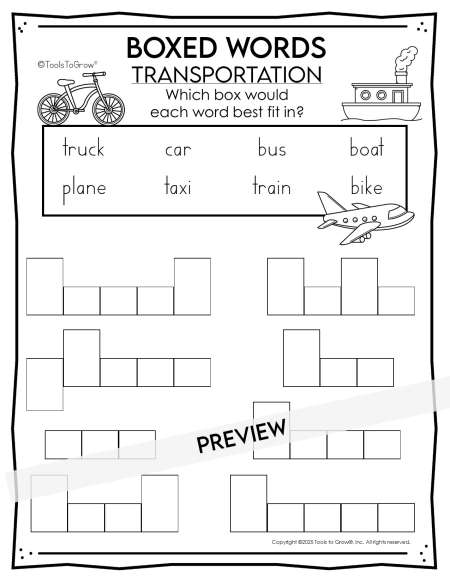 Place these words from the “Word List†in the appropriate boxes. 5 versions included!