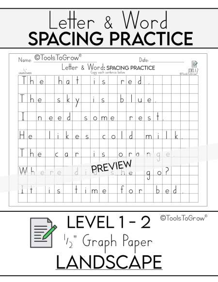 Copy each sentence. 1/2 inch graph paper with a solid line between each sentence. Includes 6 sentences.