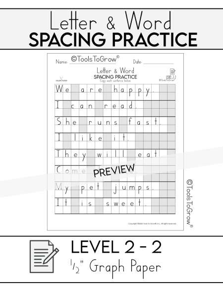 Copy each sentence. 1/2 inch graph paper with a solid space between each word. Includes 8 sentences.