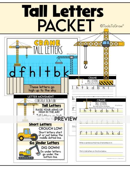 Construction Theme. Included: Teaching Poster, Movement Poster, Printing Practice