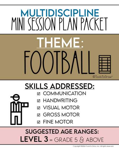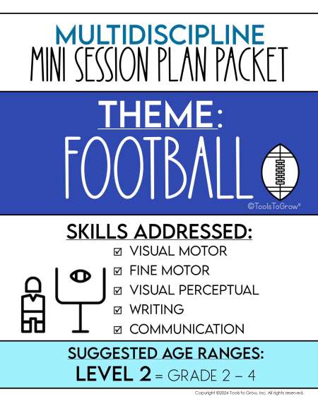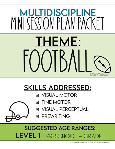 Are you ready for some Football Fun???!! These fun and exciting tools target a variety of performance areas with a football theme. These Football themed resources address: Fine Motor Skills, Visual Perceptual Skills, Social Skills/Groups, Handwriting, Bilateral Coordination Skills, and Visual Motor Skills. Go Team!