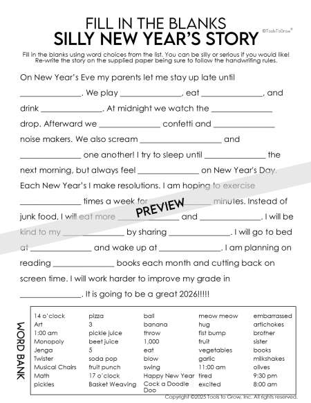 Happy New Year!! Celebrate the New Year with your children or students and have some fun!