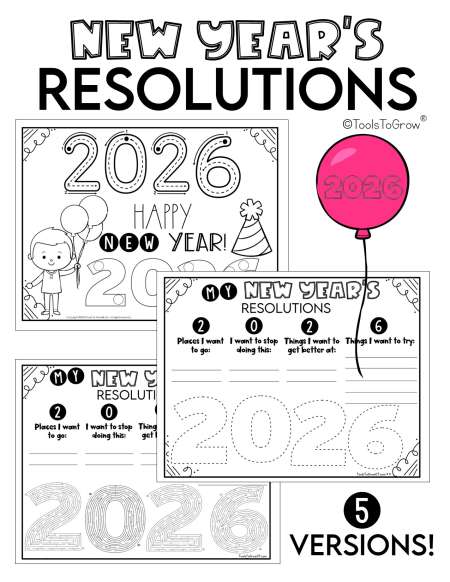 This is the perfect New Year activity that addresses a variety of skills. Includes 5 Versions: (1) Connect-the-Dots and Printing, (2) Maze and Printing, (3) Trace and Printing, (4) Tracing, Coloring, and Dots, and (5) Tracing and Coloring Page. Simply Print and Go! Happy New Year!