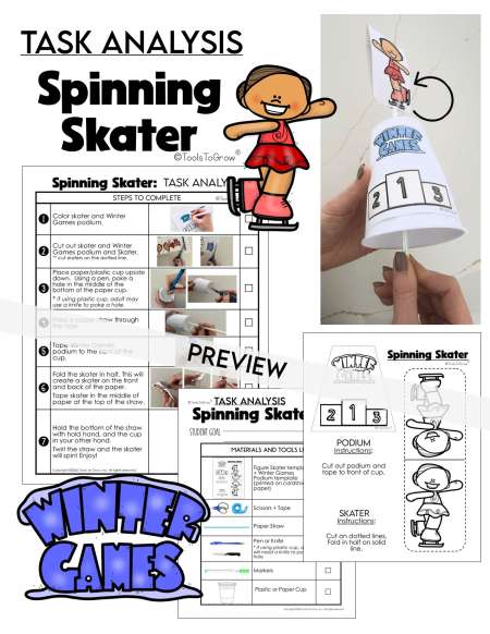 Includes detailed visual instructions, and visual materials list to make a fun spinning skater craft!